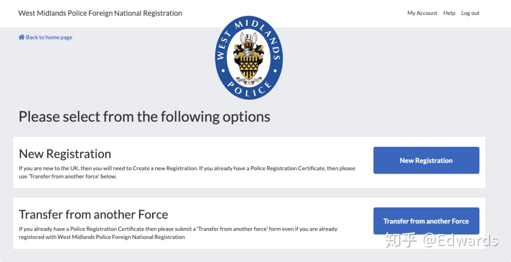 如果你以前在英国注册过,那么选择 Transfer From Another Force,其他请选择 New Registration