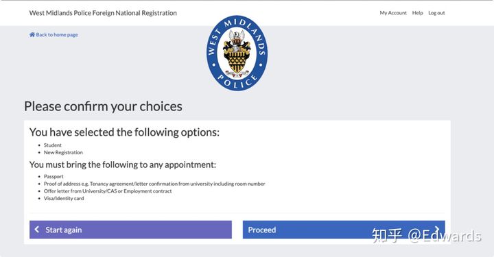 需要注意的是,这一步完成后,收到邮件已经证明你成功登记了警局注册,不再受 7 天内 警局注册限制,你接下来需要预约时间到警局登记,时间比较难约,不需要着急,只需要在你签证过期前去登记即可,但是不可以不去登记,这会影响你在英国的生活,乃至以后入境英国都有困难。只要你看到有时间可以预约,请预定位置,提前 10 分钟到达即可。